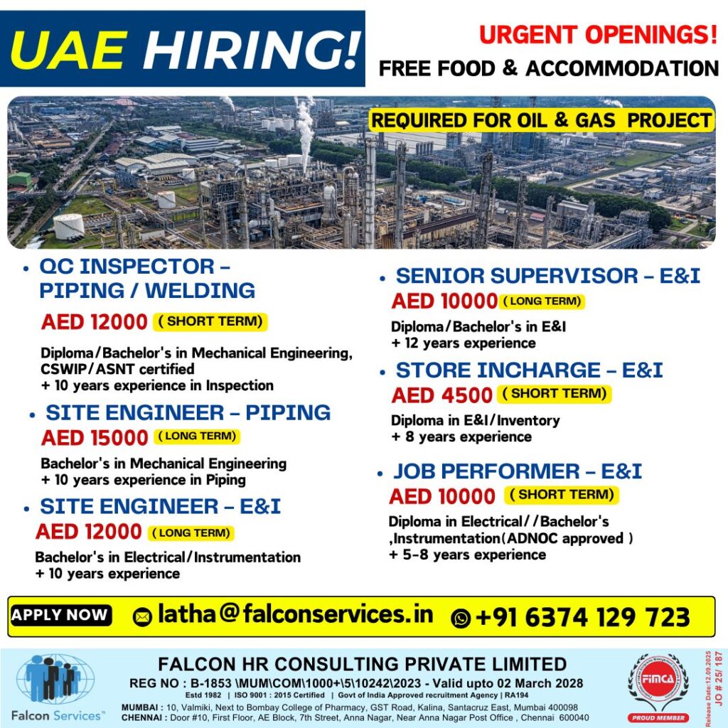 UAE Urgent Hiring – Oil & Gas Project